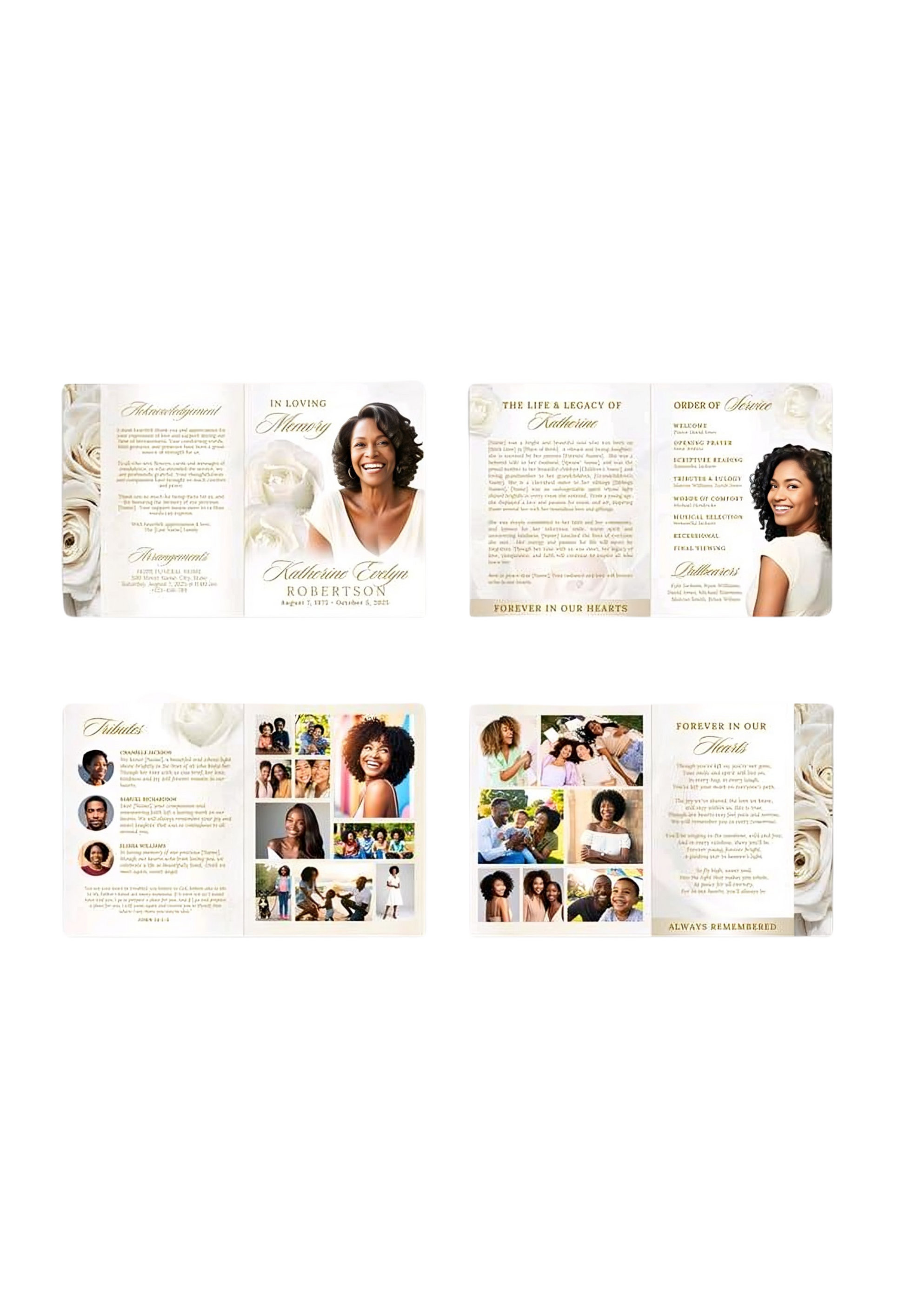 At Bespoke Bliss Creations, we understand the importance of honoring loved ones with beautifully crafted memorial programs and obituaries. Let us design and print your memorial program/obituaries, available in 8.5in x 11in,format (coming soon trifold, and booklet 11in x 17in). Choose between our premium matte and glossy finishes to create a lasting tribute that truly reflects your fondest memories. Trust our dedication to quality and excellence to deliver a heartfelt and professional keepsake.